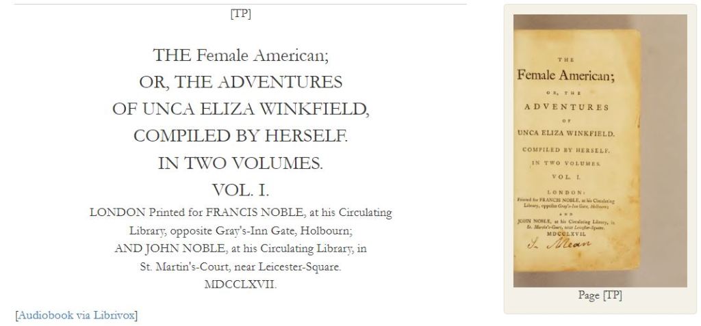 The Female American (Literature in Context – TEI Edition)